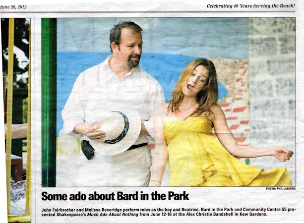 For a few years now, Melissa has been acting with Bard in The Park productions each June, in Kew Beach, Toronto, Canada.