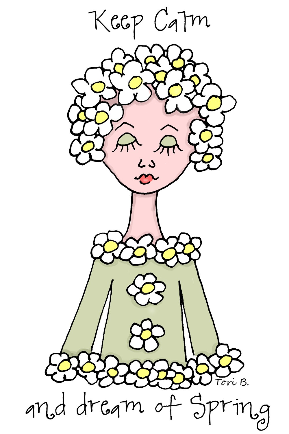I have one of my Dreamer Girls for you this week. It’s still a bit wintery here…there’s still some of that white stuff on the ground! I’m itching to get into my garden. I can’t wait for spring flowers. They were on my mind when I drew her. Meet this week’s Free Crudoodle Digital Stamp, Fleur