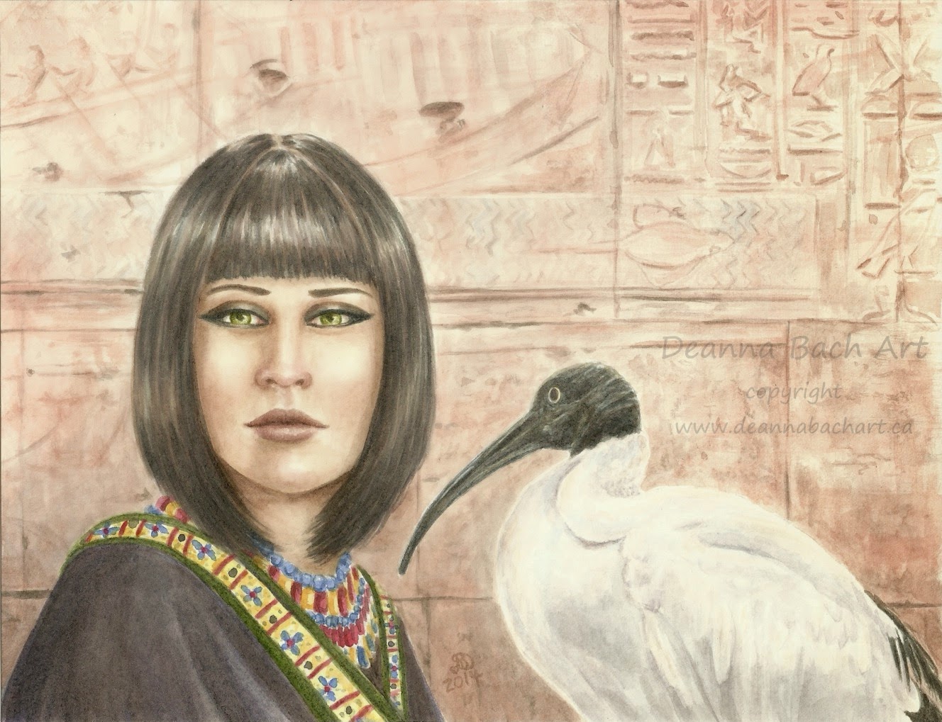 “Wisdom (Kindreds – Ibis)” – I wanted to do a different take on the Wisdom theme and pull from a different culture so I went with Egyptian where the ibis is associated with wisdom. I also thought it would be fun to try to do a typical Egyptian heirglypics as a background. It also happens to fit well in my large “Kindreds” series of a person and their kindred spirit animal.